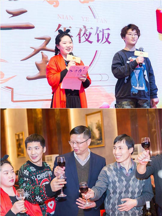 一年一度的三圣年夜飯,集團(tuán)所有員工歡聚一堂,公司準(zhǔn)備豐盛宴席,答謝不辭辛苦的員工、熱心支持的合作伙伴。席間,大家暢所欲言,互敬美酒,互道祝福,溫馨的大家庭其樂融融。