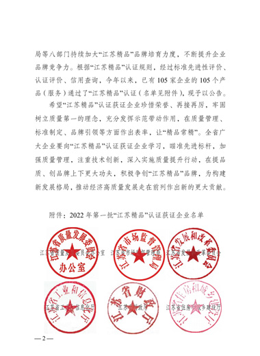 “江蘇精品”是江蘇省為推動(dòng)形成一批自主創(chuàng)新、品質(zhì)高端、服務(wù)優(yōu)質(zhì)、信譽(yù)過(guò)硬、市場(chǎng)公認(rèn)的“江蘇精品”品牌群體,以行業(yè)龍頭骨干、“專精特新”和“單項(xiàng)冠軍”等企業(yè)為主體認(rèn)證對(duì)象,參照國(guó)際慣例、運(yùn)用市場(chǎng)機(jī)制,由江蘇省市場(chǎng)監(jiān)管局會(huì)同省發(fā)改委等七部門開(kāi)展的重點(diǎn)認(rèn)證工作。