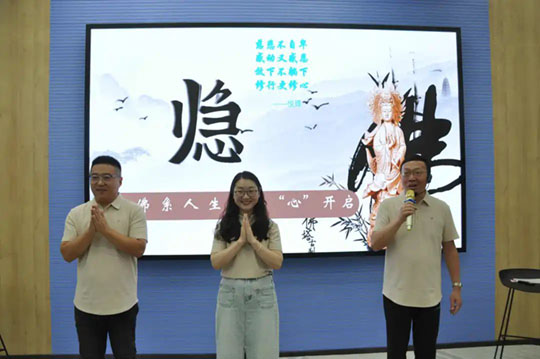 學習和運用佛陀的經(jīng)典要義,本場活動中還穿插了互動環(huán)節(jié),就如何以智慧的方法去處理家庭關系,以及夫妻之道、教育子女等話題,活動現(xiàn)場展開了活躍的討論;同事們積極參與交流,敞開心扉,對照與反觀,獲得不少感悟。