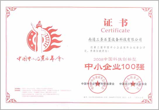 經(jīng)第三界中國(guó)中小企業(yè)家年會(huì)組委會(huì)評(píng)定,我公司被評(píng)定為:2008中國(guó)科技創(chuàng)新型中小企業(yè)100強(qiáng),并頒發(fā)了證書和牌匾.