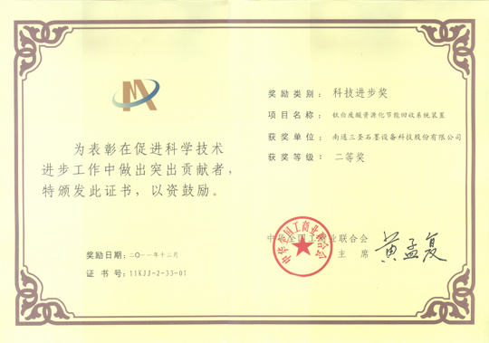 日前,從全國工商聯(lián)十屆五次執(zhí)委會議傳來佳音,南通三圣“鈦白鈦白廢酸資源化節(jié)能回收系統(tǒng)裝置”榮獲“2011年中華全國工商業(yè)聯(lián)合會科技進(jìn)步二等獎”。